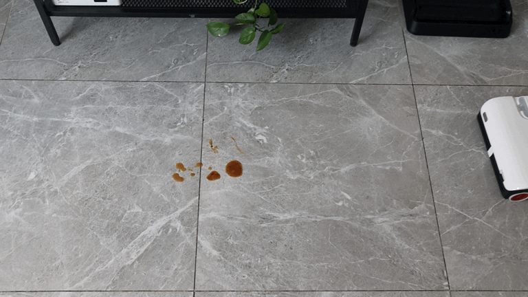 对于日常需要用抹布反复擦拭几遍才能完全擦净的酱油、酸奶这类比较难清理的液体垃圾,普通扫拖一体机器就容易将这些垃圾抹得满地都是,越拖越脏。在我们的测试中可以看到,石头智能洗地机 A10 Plus的表现还是相当令我们惊喜的,只需要一遍,就能将这些粘稠的湿垃圾清洁干净,没有任何残留,十分高效,这样的清洁效率着实令我们意外。