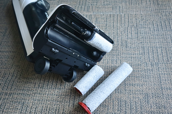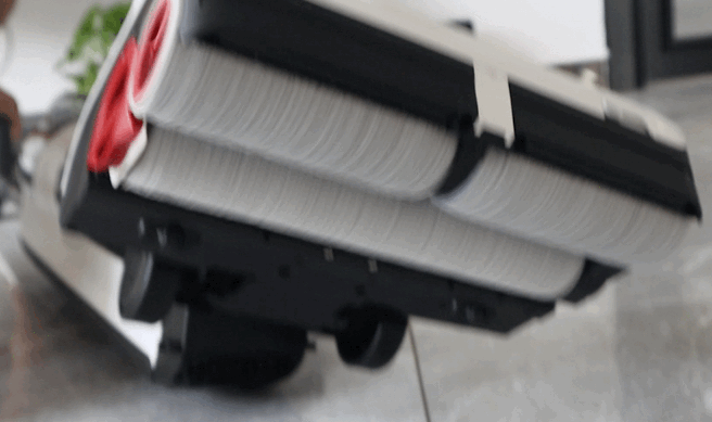 地刷部分,是石头智能洗地机 A10 Plus最与众不同的地方。其延续了上一代的双滚刷结构,两排滚刷,紧密贴合。刷头拆装也十分简单,只需轻轻一扣就可以完成。