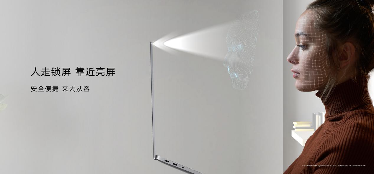 在TOF传感器的加持下,荣耀MagicBook V 14 2022还可实现人走锁屏、靠近亮屏的创新功能,既带来便捷从容的高效体验,又能确保用户在离开电脑时信息安全得到保护。